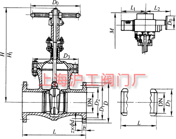 | DN | L | D | D1 | D2 | b | z×Φd | D3 | D7 | M | L1 | L2 | D0 | 电装型号 | 重量/kg |