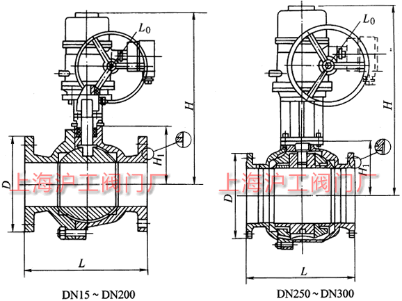 Q941F、Q941Y 型 PN16~PN63 电动球阀:电动驱动、法兰连接形式、浮动球直通式,阀座密封面材料有氟塑料 (Q941F)、硬质合金 (Q941Y),公称压力 PN16~PN63、公称尺寸 DN15~DN300、适用温度为 -29~450℃,阀体材料有碳素钢、不锈钢和合金钢。