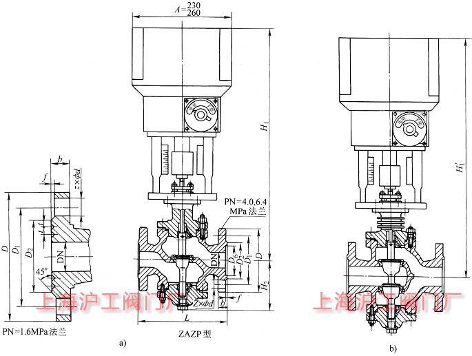 ZAZP、ZAZN 型电动直通单座调节阀:由电动执行机构与各种的阀体(单座、双座、套筒)组配而成,而具备了各种阀的特点。电动调节阀以单相交流 220V 电源为动力,接受统一的标准电信号 0~10mA DC 或 4~20mA DC,自动的控制阀门开度,达到对工作流量、压力、温度、液位等参数的自动控制,是生产过程自动调节的组成之一。广泛用于电力、冶金、轻工、食品、石油、化工等工业的自动控制中。